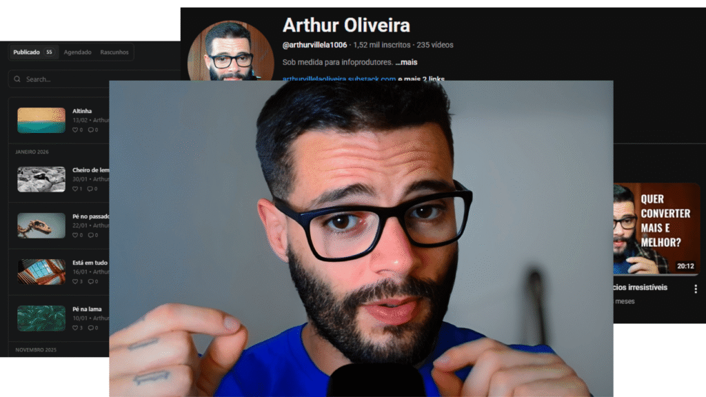 Tenho +200 vídeos no Youtube e newsletter semanal há quase dois anos.